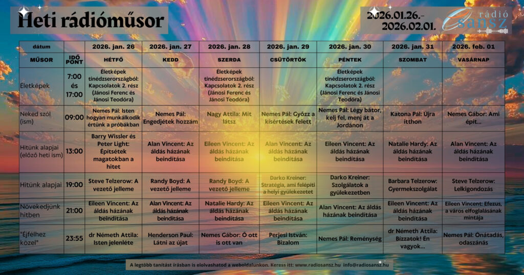 A Kereszt ereje – 5. https://radiosansz.hu/wp-content/uploads/2025/10/Kereszt-8.jpg 1024 1024 Rádió Sansz https://radiosansz.hu/wp-content/uploads/2025/10/Kereszt-8.jpgEz már az ötödik része ennek a prédikációsorozatnak. Az 1.Kor.2,2 az a bibliavers, ami megragadott, mint a sorozat…