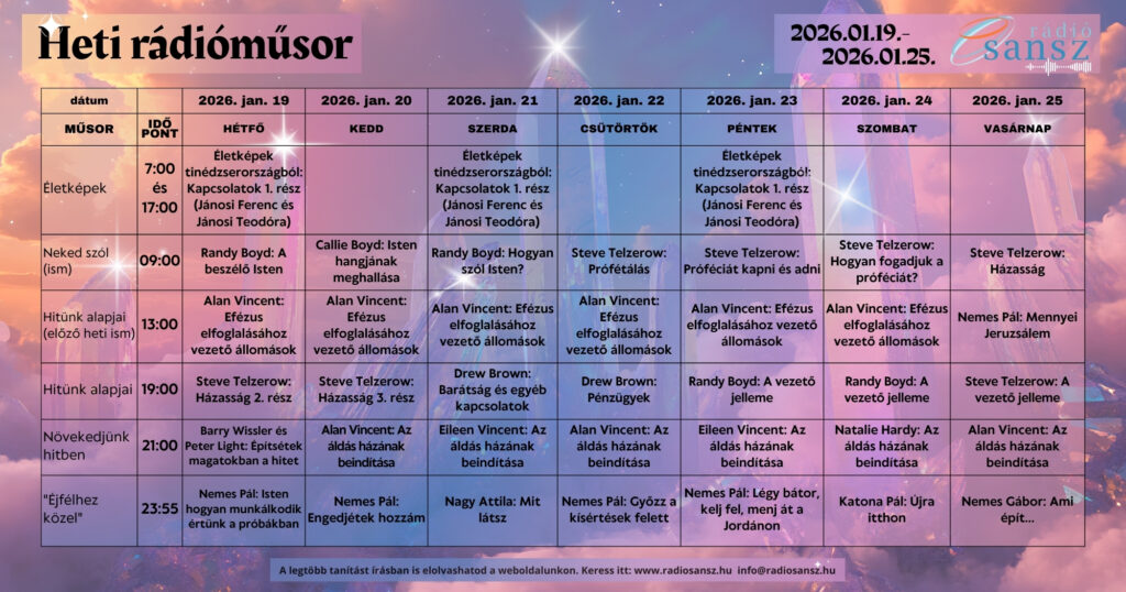 A Kereszt ereje – 5. https://radiosansz.hu/wp-content/uploads/2025/10/Kereszt-8.jpg 1024 1024 Rádió Sansz https://radiosansz.hu/wp-content/uploads/2025/10/Kereszt-8.jpgEz már az ötödik része ennek a prédikációsorozatnak. Az 1.Kor.2,2 az a bibliavers, ami megragadott, mint a sorozat…