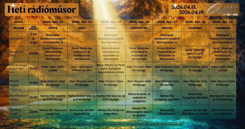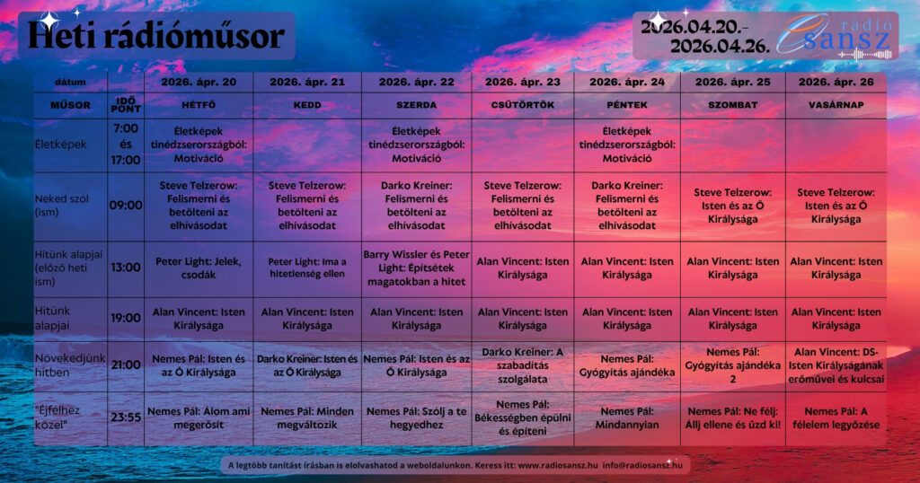 A Kereszt ereje – 5. https://radiosansz.hu/wp-content/uploads/2025/10/Kereszt-8.jpg 1024 1024 Rádió Sansz https://radiosansz.hu/wp-content/uploads/2025/10/Kereszt-8.jpgEz már az ötödik része ennek a prédikációsorozatnak. Az 1.Kor.2,2 az a bibliavers, ami megragadott, mint a sorozat…